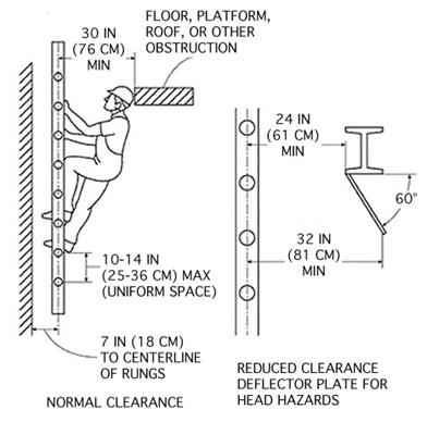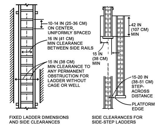 1910.29 (g)(1) Cages and wells installed on fixed ladders are designed, constructed, and maintained to permit easy access to, and egress from, the ladder that they enclose (see Figures D–14 and D–15 of this section);